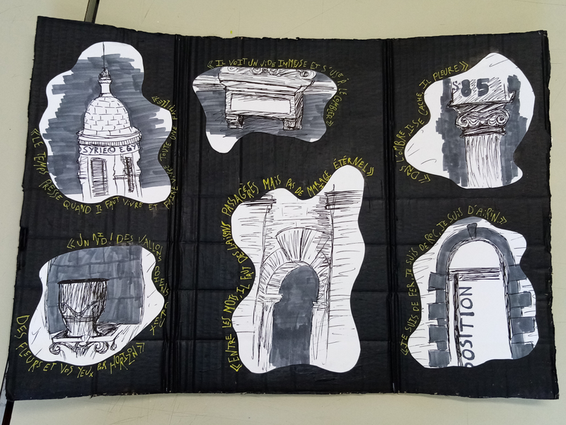 encerclés de citations d'Alphonse Daudet correspondant a l'image (âme de l'auteur qui règne dans le lycée qui porte son nom)